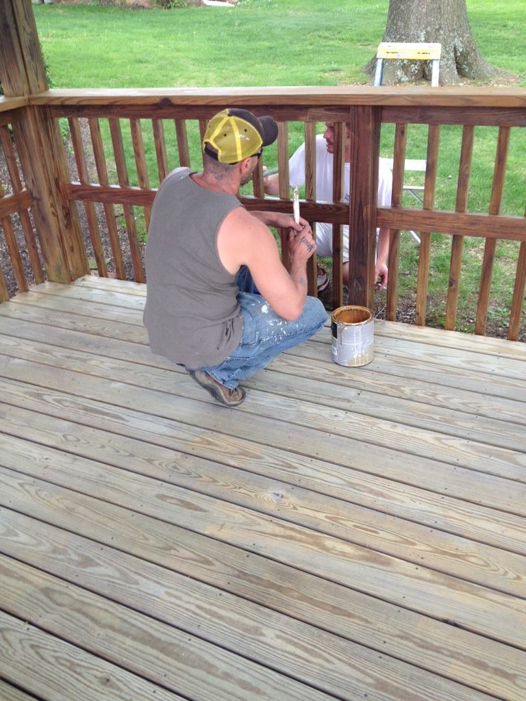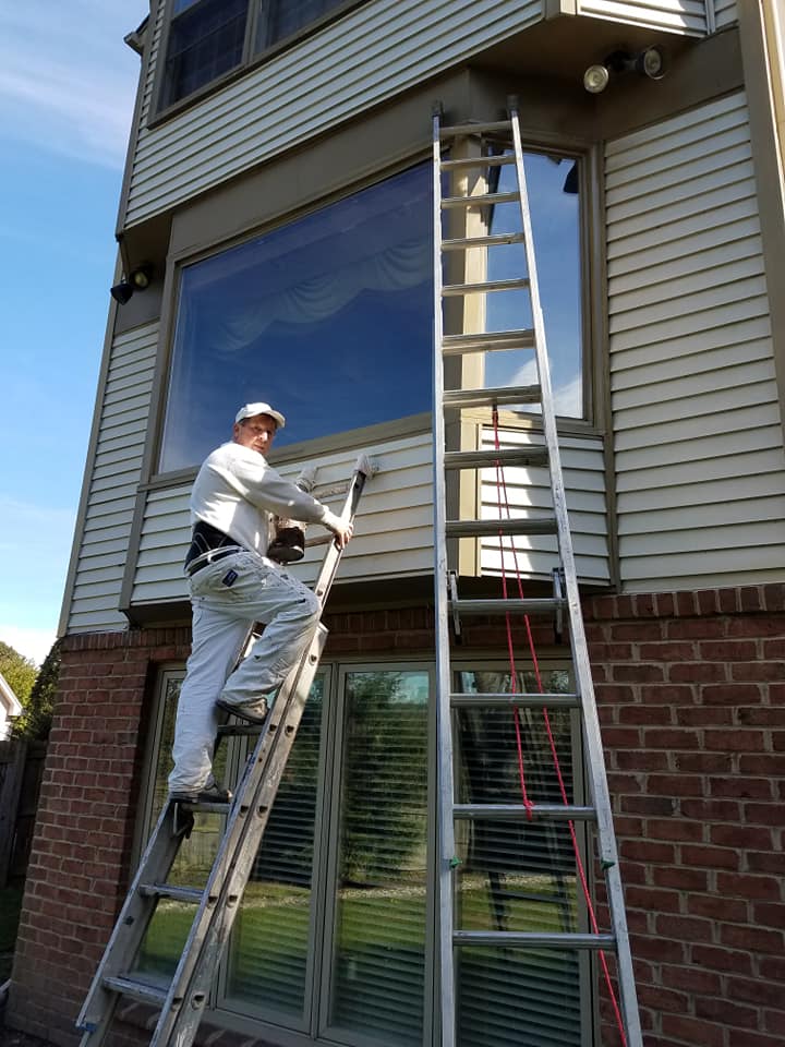 Dale did an excellent job in cleaning, sanding and painting the entire exterior of our house. This included wood siding, cedar shakes, porch pillars, wood overhangs/underhangs and a composite deck that we thought couldn’t be saved!!